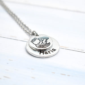 Celebrate love, remembrance, and connection with a delicately handcrafted Angel Baby Necklace, thoughtfully designed to hold a name or word that means the most to you. Each pendant is carefully hand-stamped letter by letter, then meticulously polished to a soft, luminous shine — ensuring every piece carries its own subtle character and artisanal charm.