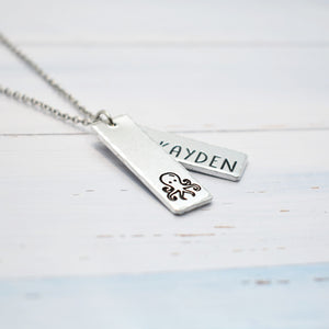 This handcrafted octopusnecklace is individually hand-stamped and polished, creating a charming keepsake with a personal touch. Each pendant is made one letter and design at a time, then enamel-filled for a crisp, lasting finish. Add a name or word to make it uniquely yours — perfect for gifting or everyday wear.