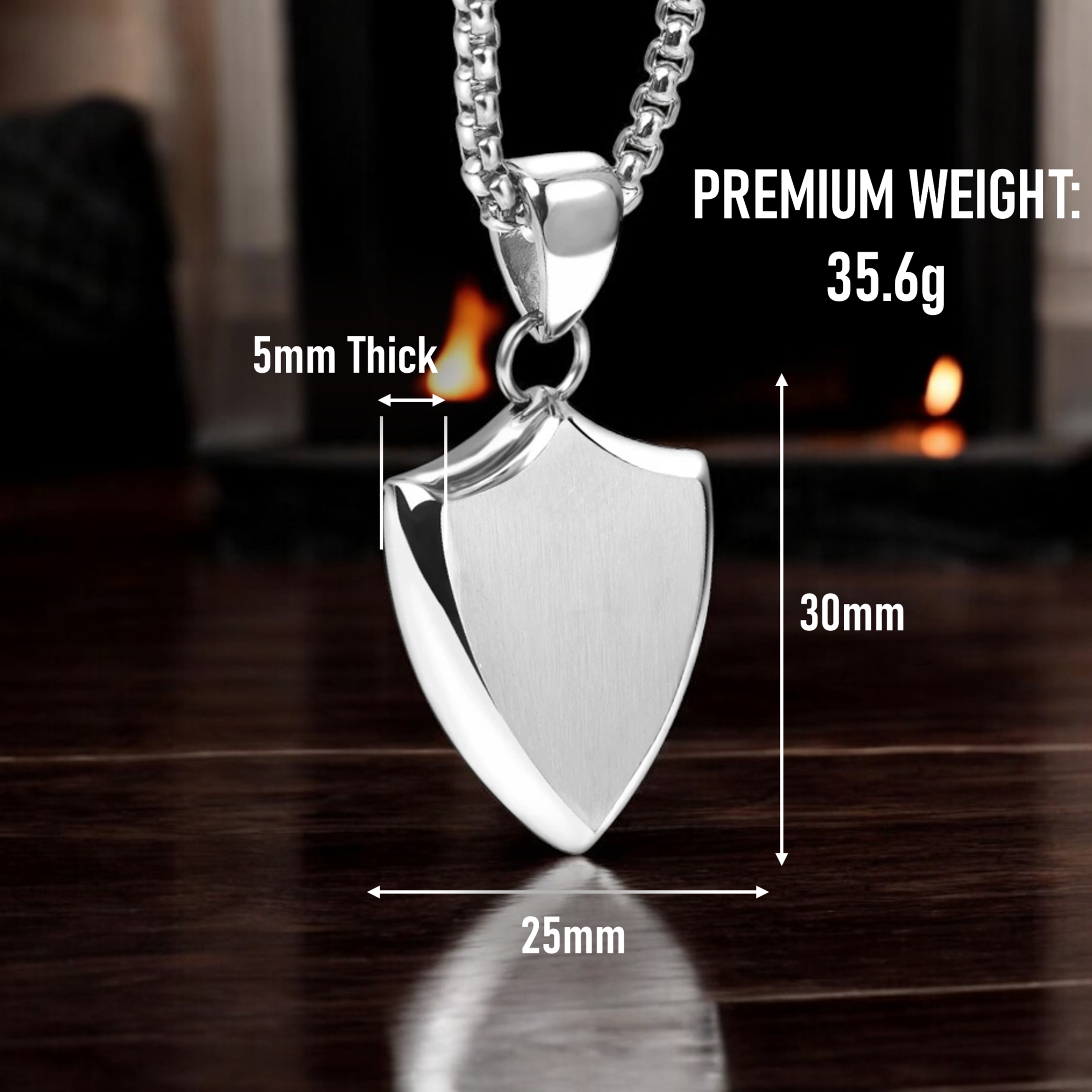 Crafted as a single, statement size with a reassuring 35.6g weight, the pendant has a smooth, polished finish that feels substantial and deliberate. Suspended from a classic ball chain, it’s designed to sit with quiet confidence—worn openly or kept as a private marker of meaning.
