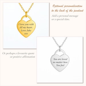 This heart-shaped pendant is crafted with intention and made to last—a symbol of love, strength, and story. Formed from polished stainless steel and finished in radiant gold or luminous silver, it becomes your personal canvas, engraved with the name, word, or mantra that holds your heart’s truth.