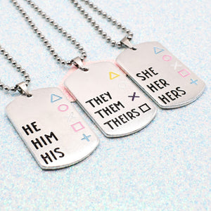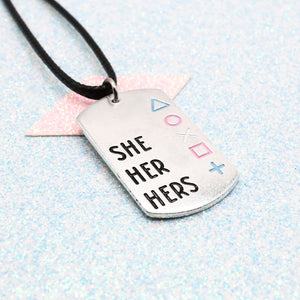 Custom Gamer Inspired, LGBTQ+ Pronoun Necklace - Personalise