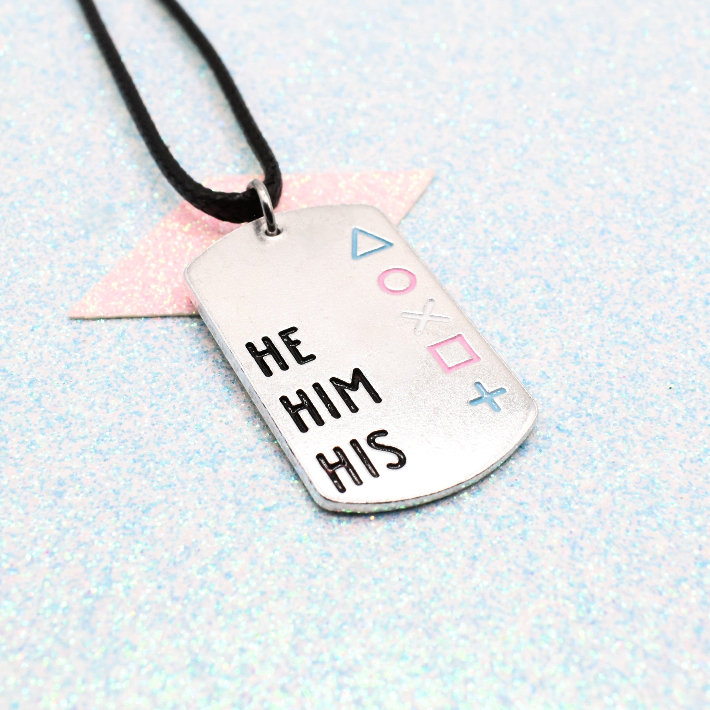 Honour your identity with this custom pronoun necklace, a bold pendant designed to proudly display your chosen pronouns. Available in He/Him, She/Her, or They/Them, each necklace is etched with care and decorated with playful enamel details, making it both stylish and meaningful.