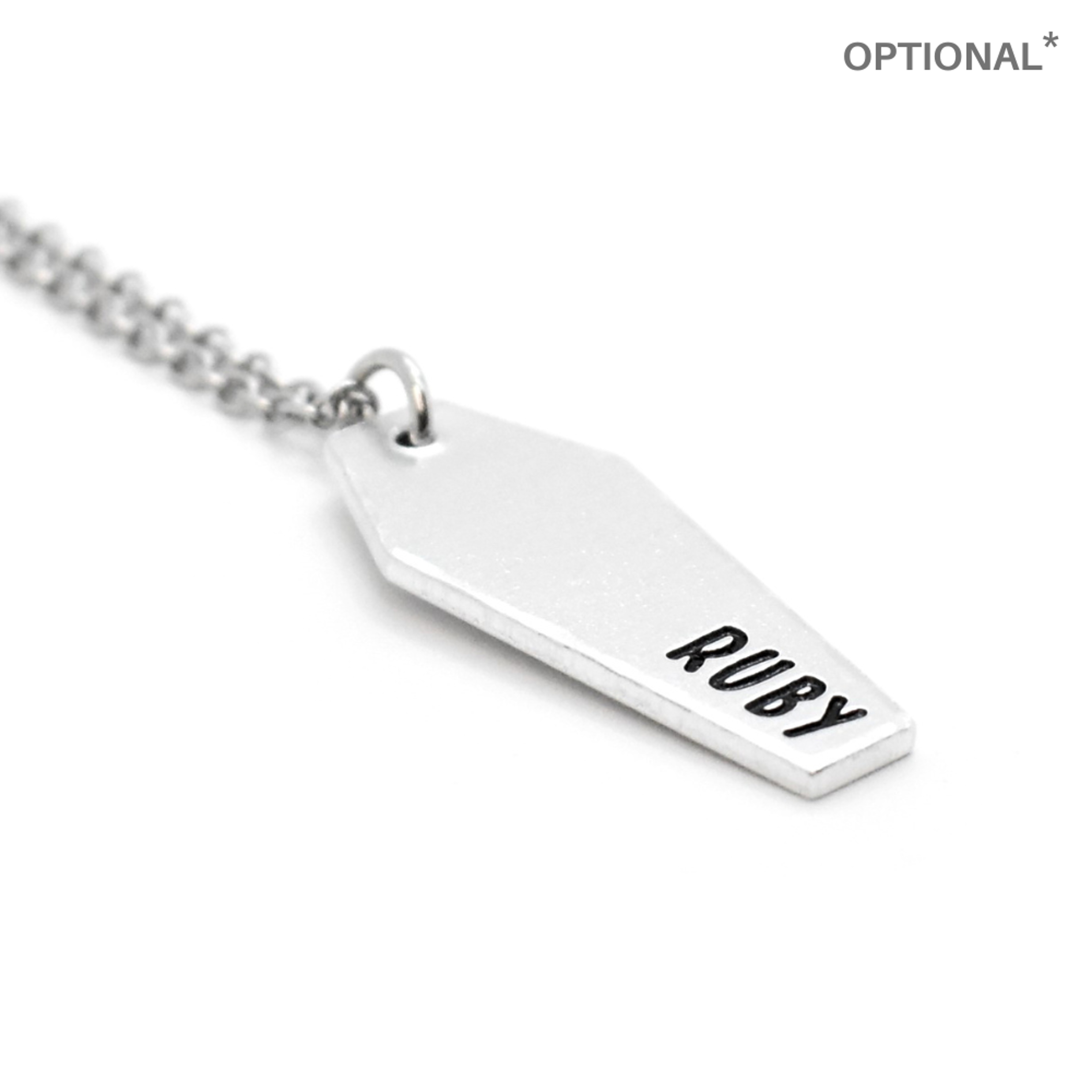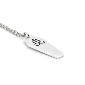 A creative leviathan cross, coffin style necklace. Optional personalisation also available to the back of the pendant too for an extra special touch.