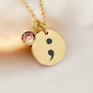Mental Health Awareness, Semi-Colon Birthstone Necklace