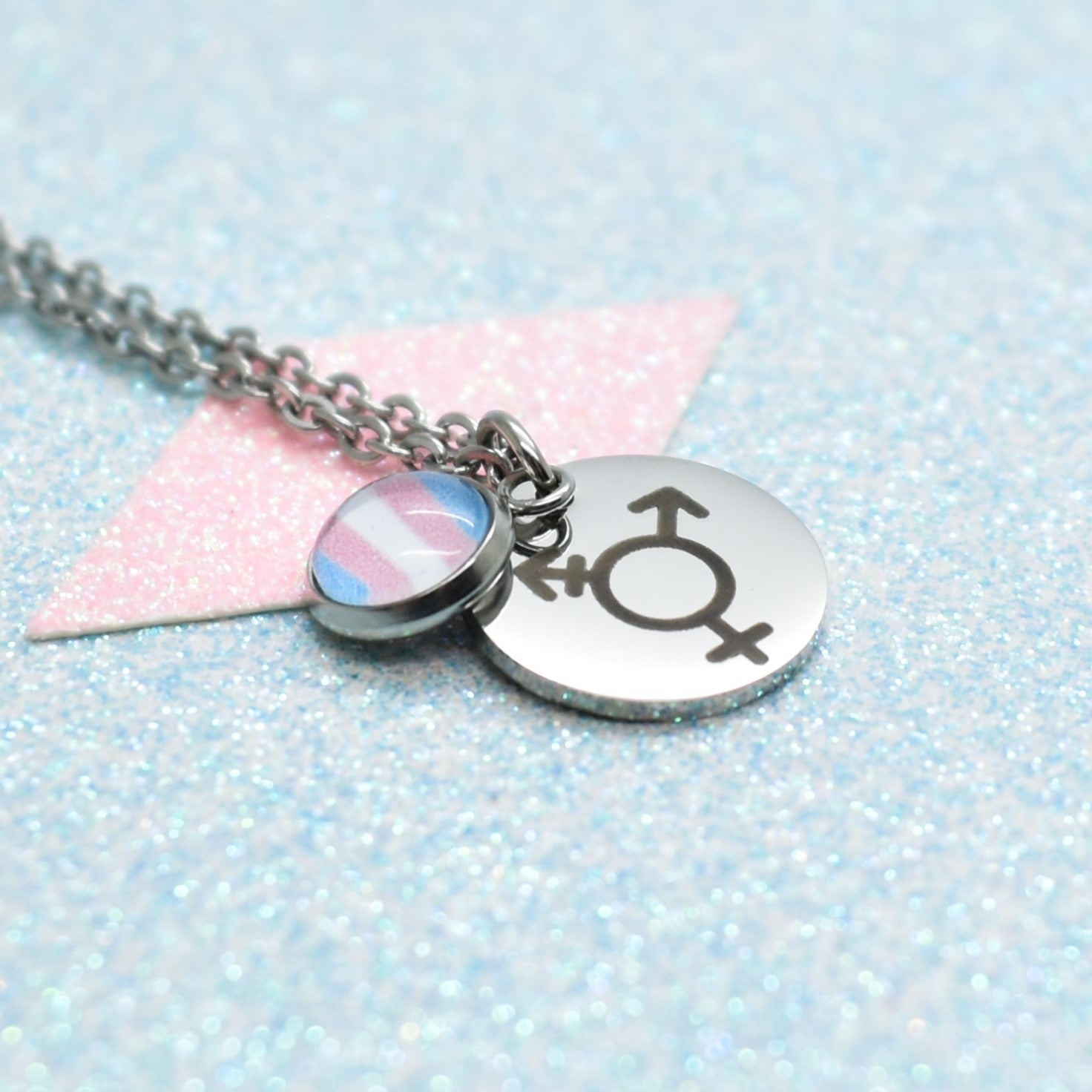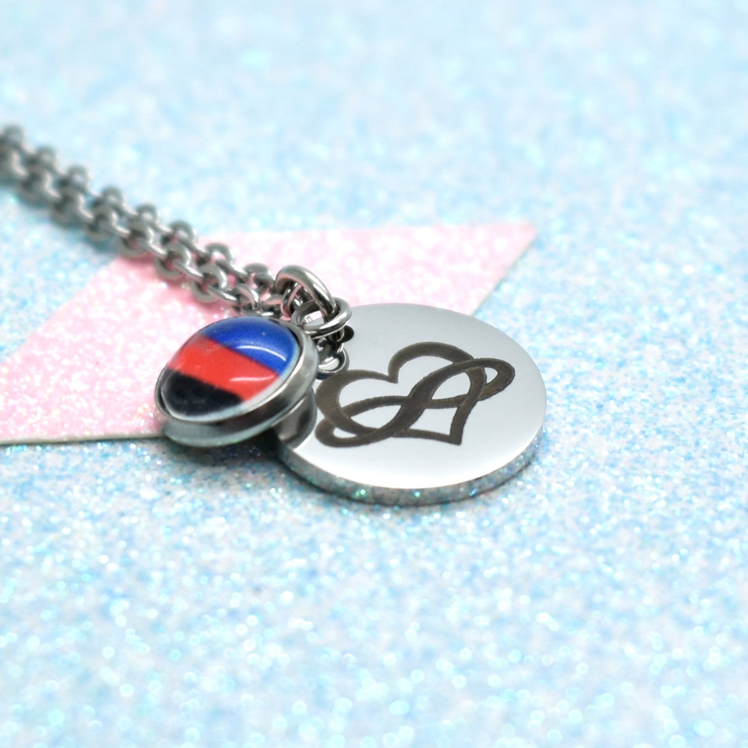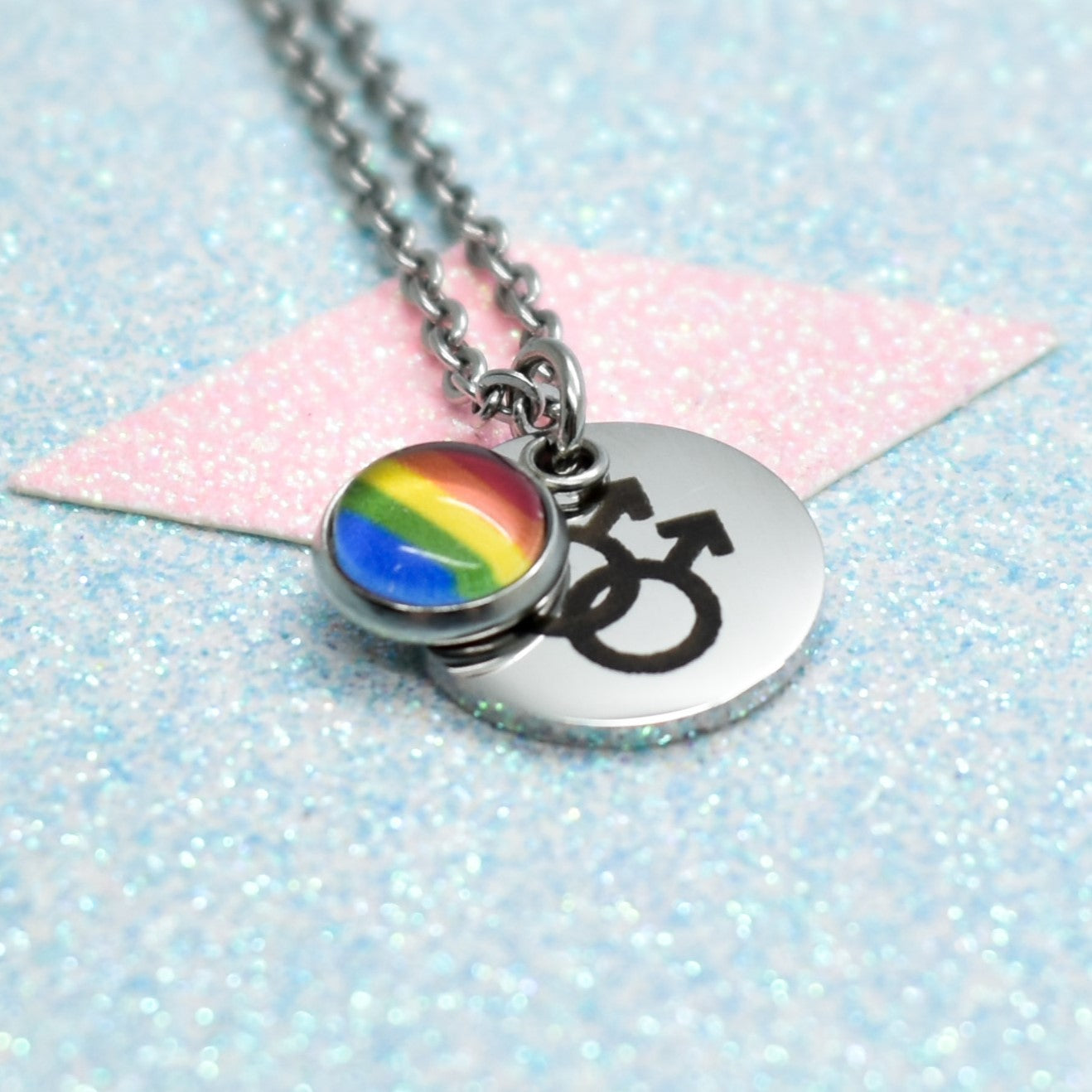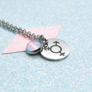 Honour your truth and identity with this custom identity symbol pride necklace, a piece designed to carry strength, visibility, and authenticity. The circular pendant is engraved with an identity symbol of your choice, while the glass cabochon holds a pride flag of your choice.