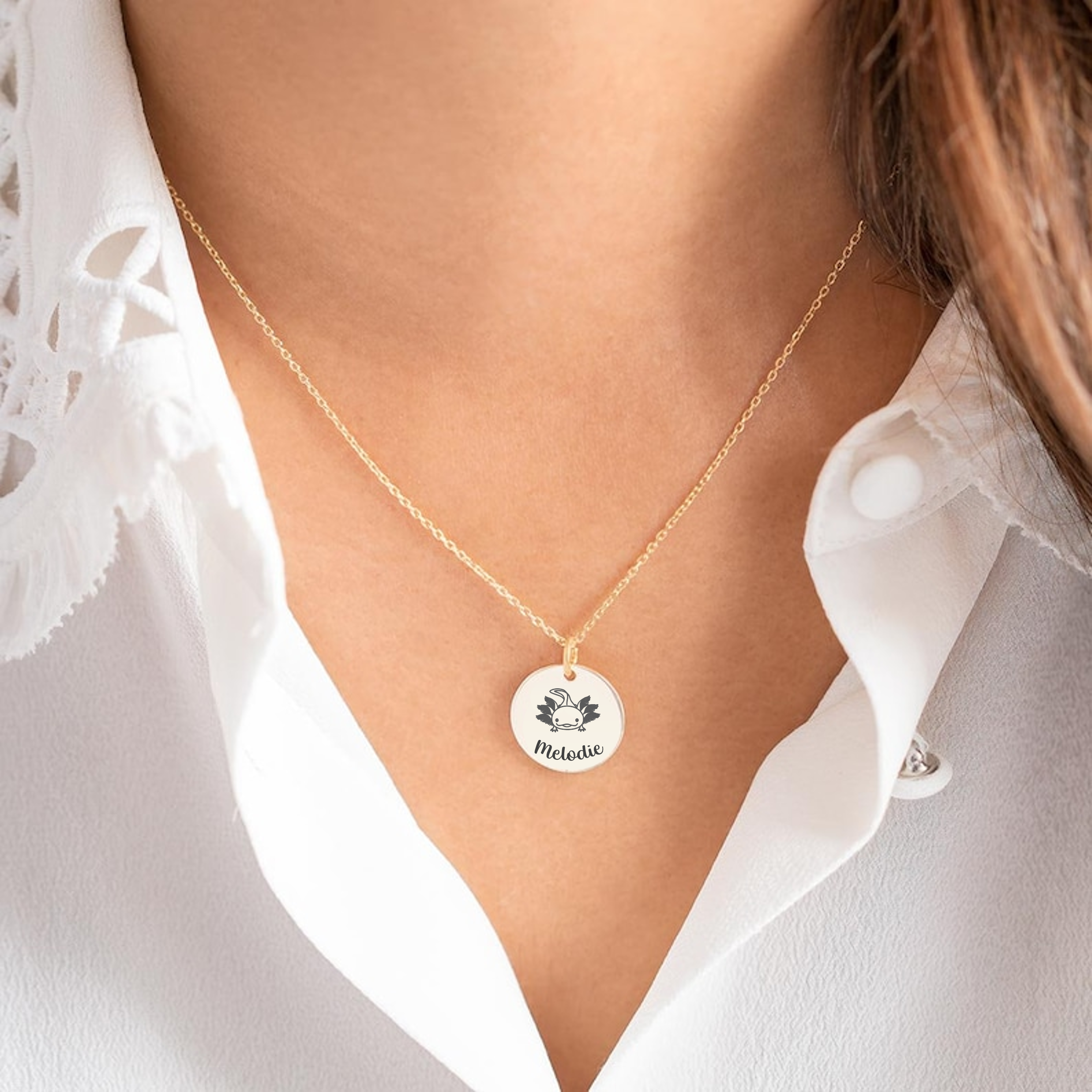 This axolotl necklace is the ultimate gift or keepsake for anyone obsessed with these extraordinary creatures. Choose between striking silver or fierce gold. The personalised name allows you to truly make it your own and will be a cherished treasure for years to come.