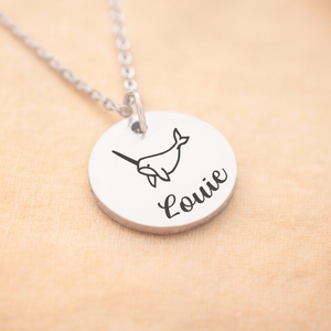 Be inspired by the ocean with the mystical unicorn of the ocean Narwhal Necklace. Available in Silver or Gold this beautiful narwhal name necklace comes complete with a personalised name of your choice. A unique gift that will be treasured for a lifetime.