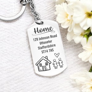 Crafted with attention to detail, this keyring offers a practical solution to keep your new address close at hand. You can also add a personal message, making it uniquely yours. Whether you're gifting it to a friend or using it for yourself, this keyring serves as a stylish reminder of this special milestone. Perfect for new homeowners, it adds a personal touch that will be cherished for years to come.