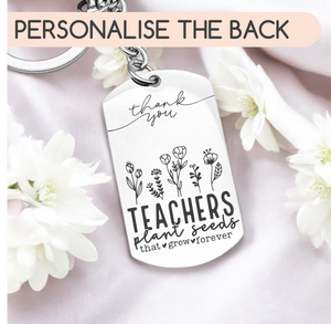 Featuring a sleek and durable design, this keyring can be personalised with a special message, name, or date. This customisation allows you to write a personal thank you that truly resonates with the teacher, making it a unique and meaningful gift. Whether it's a simple "Thank you for everything" or a more elaborate message, this keyring becomes a cherished keepsake that celebrates their hard work and commitment.