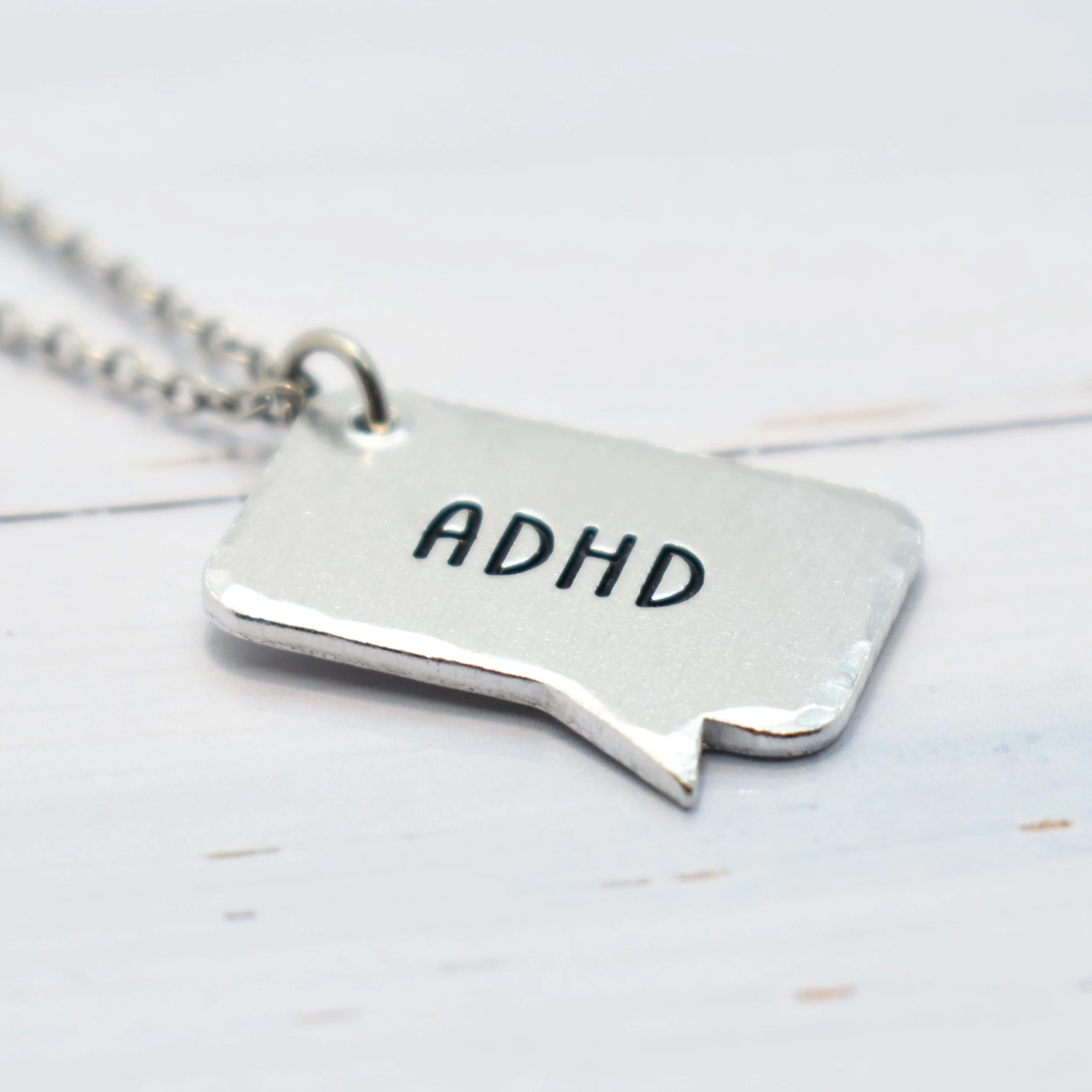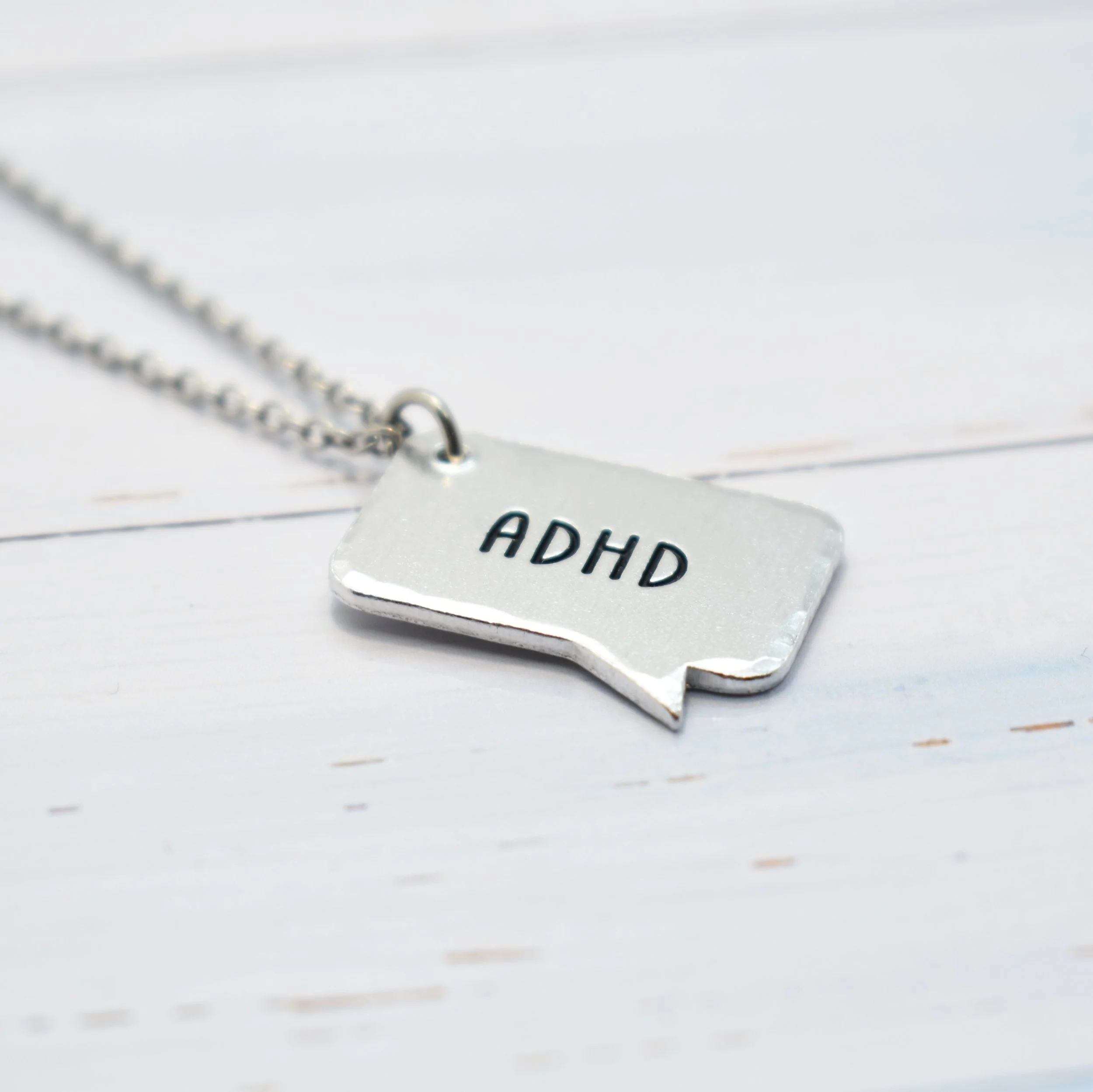 Shaped like a speech bubble, this charm helps give voice to what is often misunderstood. Each piece is stamped by hand and infilled with bold black enamel, turning a clinical word into a powerful piece of personal expression.