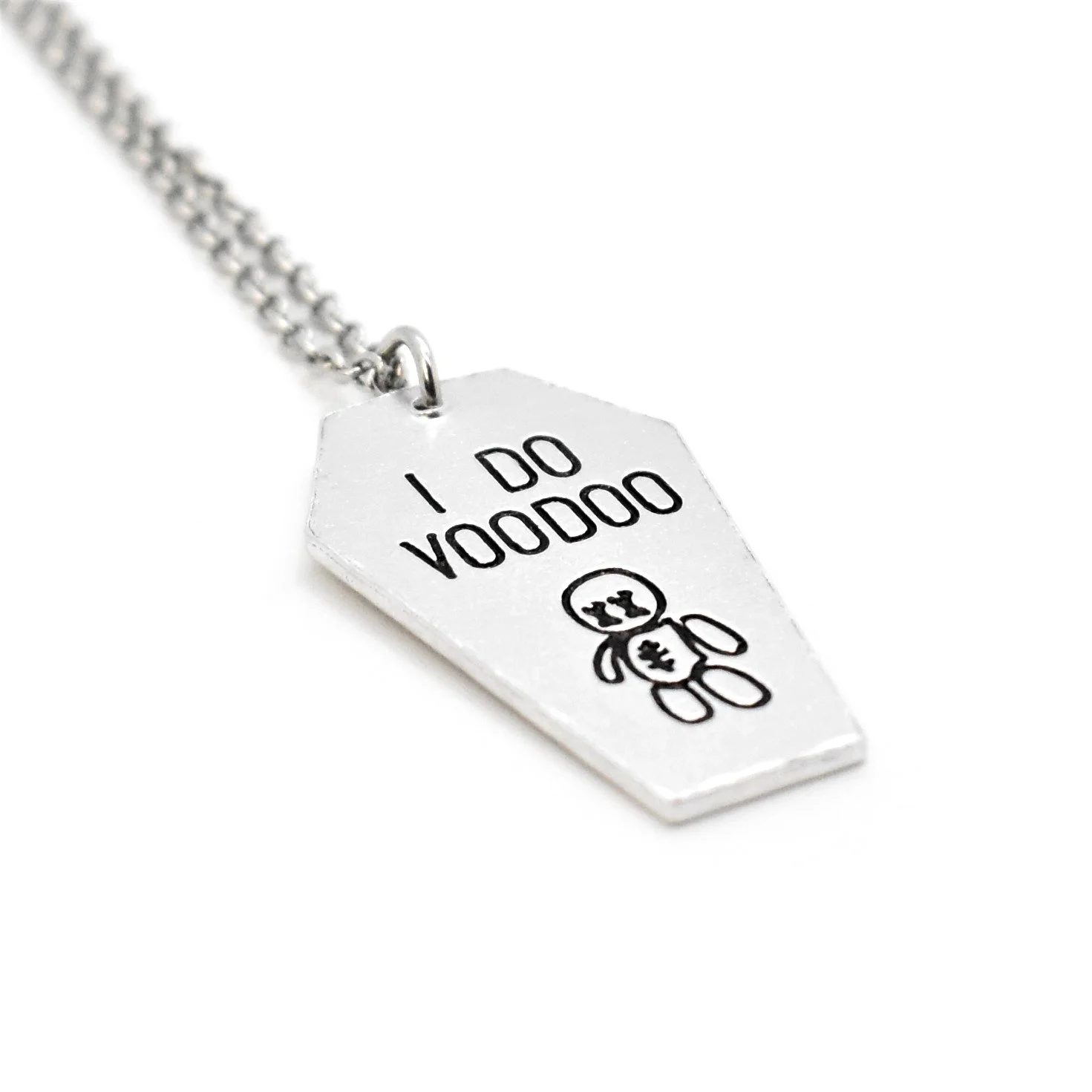 Every potion carries intent—whether brewed for love, luck, or transformation—and this necklace captures that alchemy in silver. Two coffins layered together: one etched with a potion bottle, the other engraved with your chosen name, date, or word. A charm that weaves magic with memory, spellwork with identity.